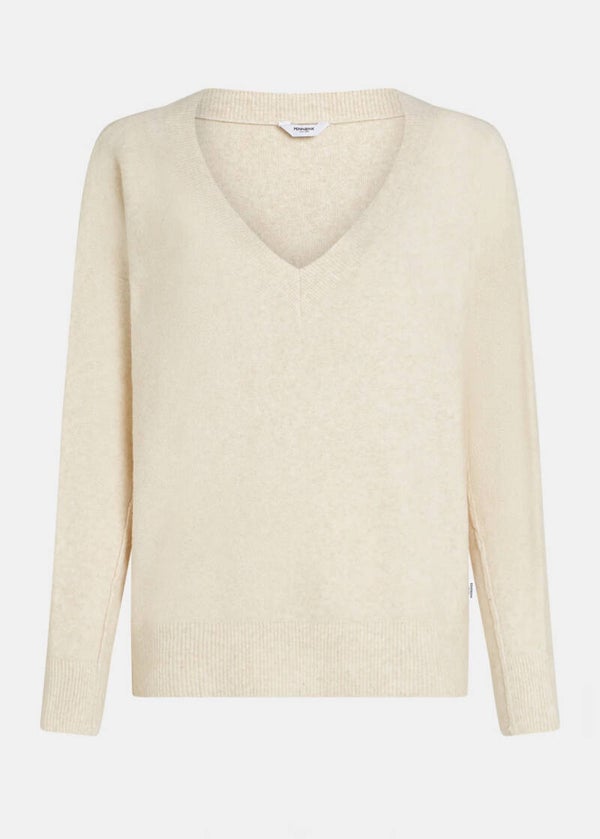 Dieser Pullover verfügt über ein raffiniertes V-Ausschnitt-Design aus weichem, gestricktem Stoff, das sowohl Komfort als auch Eleganz bietet.